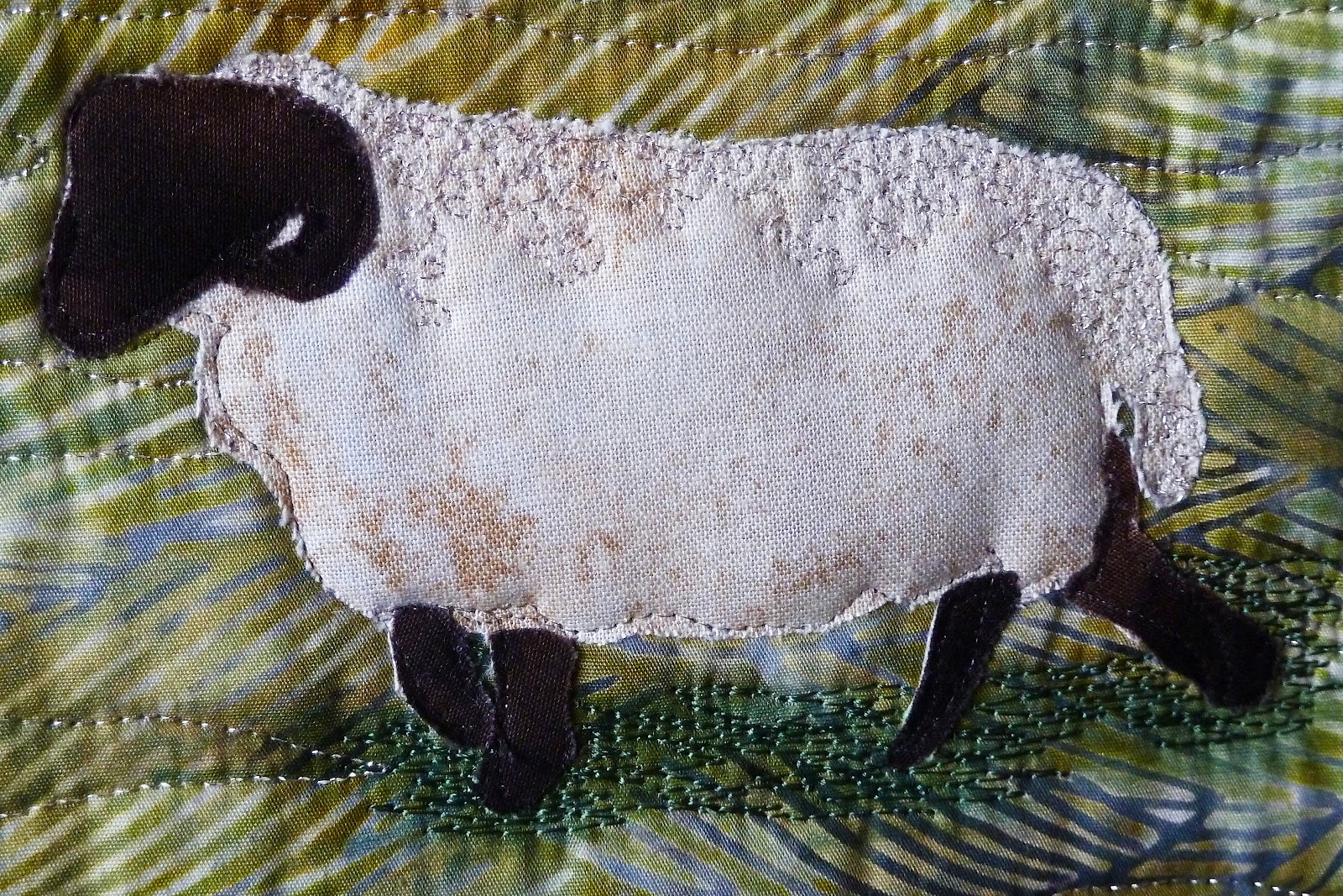 ReplyDeleteOh, the sheepses, the sheepses!! I understand and thank you. Your quilting is very good. The shadow under the sheep is special and effectful and their backs are looking so woolly. I love the legs of the sheep, and my favorite is the front one. I am opening the photo on my Ipod (bigger picture) and I see how you came up the towers with the tread, good. so well done and I understand that you are happy and satisfied.